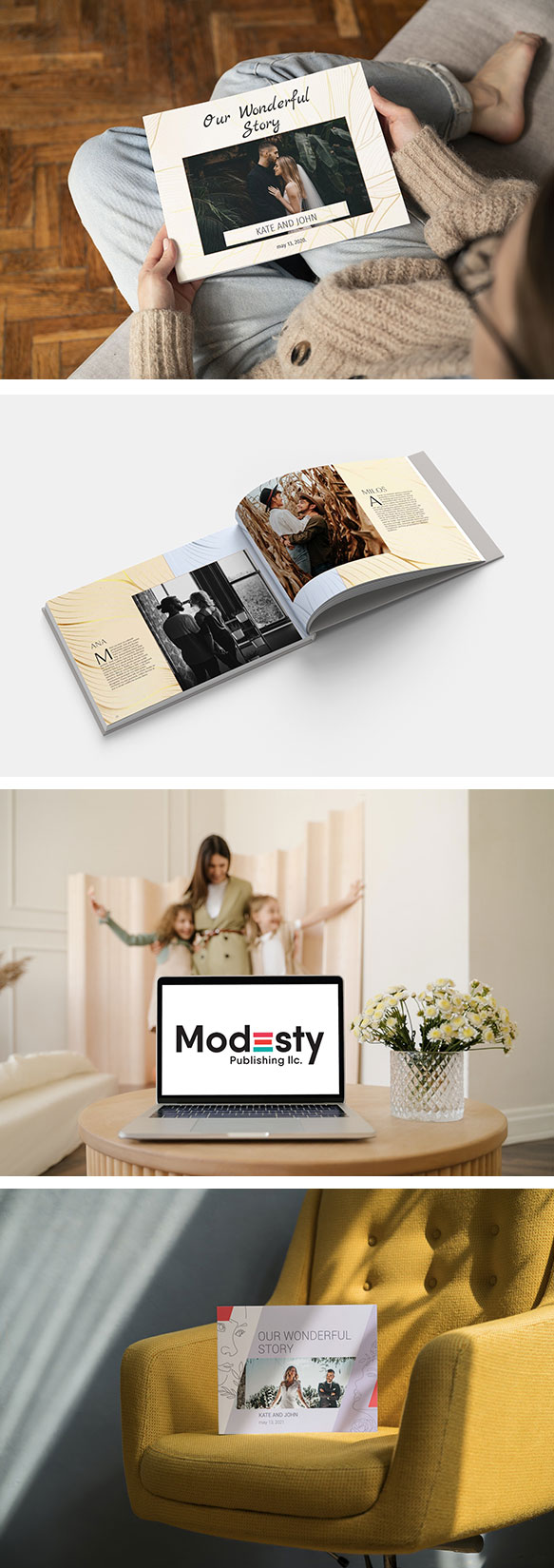 Simply select an event or story you want to share, and the fusion of our inspirational texts, written by our top-notch writers and journalists exclusively for Modesty, along with your genuine facts and photographs, will carve a timeless narrative about you.